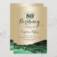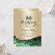 Emerald Green e ouro agate 80 convite de aniversário. Elegante design moderno com aquarela agate marble geode background, faux glitter gold e typografia script font. Trendy convida o cartão perfeito para uma comemoração de dia das mulheres na moda. Impressos convites Zazzle ou modelo de impressão digital instantânea para download.