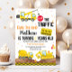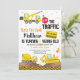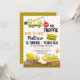 Este belo convite de aniversário inclui caminhões de construção e confete colorido.