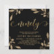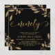 Chic Botanical Black e Dourado Concurso de aniversário do 90 de de 90. Este convite de aniversário moderno modelo apresenta o texto "noventa" do na moda em uma enorme folha de ouro falso, escrita por caligrafia (ou tipografia) manuscrita com caudas de haste, folhagem botânica de folha de ouro falsa em volta, detalhes da festa em cor dourada sobre fundo preto. Perfeito para comemorar os 90 anos em estilo, este convite adiciona um toque de glamour a qualquer partido, tanto para homens quanto para mulheres.