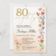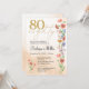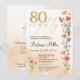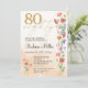 Aniversário do Elegante Dourado Floral 80 - 80 Anos de Convite. Celebre 80 anos maravilhosos com este elegante design de aniversário de ouro e 80 floral. Com "80", flores moles de cor d'água e um roteiro moderno em um fundo bege quente, este convite combina o encanto do eterno com um novo aspecto. O verso contém uma mensagem sincera e coordena detalhes florais. Ideal para festas de aniversário de marcos, celebrações de jardim ou reuniões formais. Aproveite!