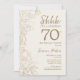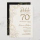 Gelado de ouro elegante e convite de aniversário 70 de surpresa preto com sua foto na parte de trás do cartão. A moderna design feminina moderna tem sotaques botânicos e letra de script de tipografia. Simples cartão de convite floral perfeito para uma festa surpresa na moda. Pode ser personalizado para qualquer idade. Impressos convites Zazzle ou modelo de impressão digital instantânea para download.