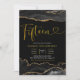 Convite de Aniversário do Elegante Black e Dourado Agate Quinze