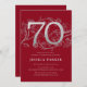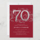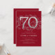 Elegante convite de aniversário de 70 de prata vermelha. Design feminina moderna personalizável, com sotaques botânicos rosas e prata brilhante fraca. Simples cartão de convite floral perfeito para uma comemoração de um na moda. Personalize com seus próprios detalhes. Impressos convites Zazzle ou modelo de impressão digital instantânea para download.