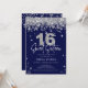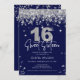 Este convite de 16 anos apresenta uma borda reluzente de prata, um diamante 16 e um texto branco "doce dezesseis". É moderno e luxuoso para uma menina cintilante, menina de 16 anos.