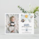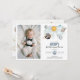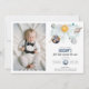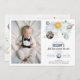 Celebre o marco especial do seu filho com este convite de aniversário de tema do espaço sideral mágico. Apresentando planetas imaginários, luas e estrelas em marinho e mira dourada. Coloque sua foto de bebê no convite. Estas estrelas de galáxia solar e planetas são perfeitas para uma festa de aniversário simples. O moderno design whimsical mostra um fundo de marinho-azul-aquarela adornado com um sol vibrante amarelo, lua de cinza sorridente, planetas de cor pastel e estrelas de brilho dourado dispersas. Foto do bebê gerada pelo Freepik.