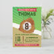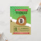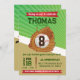 Um convite de aniversário divertido e colorido para baseball. Apresentando uma grande luva e bola de beisebol na frente e jogadores de beisebol nas costas. Retrorítico.
