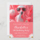 Jogue uma fabulosa besta com tema flamingo com este adorável convite de aniversário! Apresentando um na moda flamingo nos óculos escuros contra um fundo rosa vibrante, este design personalizável é perfeito para uma festa infantil tropical e divertida. Adicione seus detalhes para criar uma celebração memorável cheia de risos e alegria!