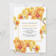 Orquídea amarela elegante em um convite de aniversário de pano de fundo branco. Fácil personalização para detalhes de nome, idade e evento para atender às suas necessidades.