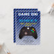 Game On Video Game Controller Gaming Birthday Invitation. Controladora de jogos em um fundo vívido de faixa de luz azul néon.