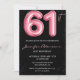 Convite Aniversário do Glam Glitter 61 ruas, preto-rosa