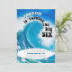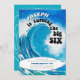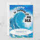 O convite para 6 de aniversário do tema Oceano com grande onda azul de surfe, escrito com "[name] está virando o grande SEX" em ousado groovy retro typografia. O modelo está pronto para você personalizar os detalhes do convite, que atualmente lê "pegar uma onda e suturar para sua comemoração de 6.." e você pode editá-lo como quiser. O design tem uma paleta colorida em tons de turquesa, azul e verde oceânico. Por favor, procure na minha loja mais temas oceânicos, surfs e bebês em convites estilo conselho.