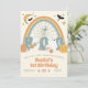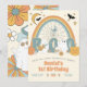 Groovy retraiu o convite de aniversário do Dia das Bruxas com um arco-íris, fantasmas assustadores, abóboras, cogumelos e flores. Perfeito para uma festa hippie dos anos 70!