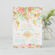 O aniversário de fada elegante convida design com glitter dourado e efeito de folha e rosas de efeito de aquarela e arranjo floral secreto, jardim encantado.