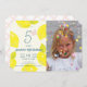 O convite para o aniversário desta garota fofa com uma foto e um fundo amarelo pálido com limões amarelos pintados à mão e uma borboleta rosa. O verso apresenta um fundo branco com padrões de verificação cor-de-rosa claro-coral pintados à mão. Perfeito para festas de aniversário, festas de blocos, festas de formatura e festas de limpeza doméstica. Personalize-o para as suas necessidades. Você pode encontrar produtos correspondentes na minha loja.