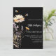 Um fundo negro. Decorado com abelhas e pintado flores silvestres em violeta e rosa. Personalize e adicione um nome e detalhes da parte. Texto branco.