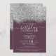 O convite de aniversário elegante, glamouroso e moderno é perfeito para a mulher contemporânea e na moda. Ele apresenta um falso bloco de cor cintilante prateado brilhando, escondido, escondido, em cima de um simples fundo púrpura cassis plum. A parte traseira exibe a mesma brilho, mas um painel mais espesso. Este chic, luxo e design único será um sucesso para todos os seus hóspedes! ***NOTA DE DESIGN IMPORTANTE: Para qualquer solicitação de design personalizada, como solicitações de correspondência de produtos, alterações de cor, mudanças de posicionamento ou qualquer outra solicitação de alteração, clique no botão "CONTACT" ou envie um e-mail ao designer diretamente em lafemme.art@gmail.com. Você pode até enviar um e-mail para ela solicitando um design completamente personalizado e novo.