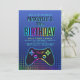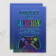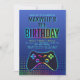 Seu jogador nivelou! Este design de aniversário de jogos tem estilo digital e um controlador de console para definir o palco para uma celebração de excelente. O esquema de cores azul-marinho e arco-íris e as fontes ousadas são perfeitos para jogadores de qualquer idade. Faça o download da sua cópia digital hoje mesmo para que você comece no melhor aniversário de todos os tempos!