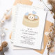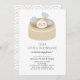 Este belo e kawaii "nosso pequeno idiota está virando um!" convite de aniversário do garoto mostra um bobo com um rosto sorridente e corações azuis em um navio a vapor chinês em um fundo branco. O verso apresenta um fundo branco com padrões de ondas de cinza. Altere a cor de fundo tanto na frente quanto no verso e personalize-a para suas necessidades.