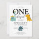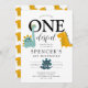 Bonito e caprichoso senhor ONEMaravilhoso convite de primeiro aniversario do garoto de dinossauro de aquarela.