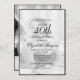 Um Convite de Aniversário para Monograma Pessoal Elegante aniversário de 40 anos em Preto e Branco. A idade pode ser alterada para qualquer idade, não apenas para 40 anos. Uma foto pode estar na frente e no verso do convite pessoal. As informações são facilmente alteradas para suas próprias informações personalizadas com a palavra surpresa que pode ser removida, a idade alterada e a data de nascimento removida, se você quiser. O inverso tem a fotografia pessoal com um monograma pessoal usando o mesmo roteiro elegante que o convite.