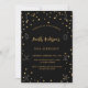 Um convite de aniversário glamouroso para ele e para ela. Um fundo preto decorado com estrelas douradas falsas. Personalize e adicione um nome e detalhes da parte. Adicione o ano de nascimento e o ano de celebração. Fundo: fundo preto e estrelas ouros.