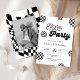 Convite Aniversário do Padrão Verificado Retro Preto e Bra