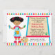 Artes coloridas e artesanatos que pintam convites de festas de aniversários. Convite perfeito para alguma festa de aniversário dos amantes da arte! Caracteriza uma menina bonito do afro-americano que veste uma blusa com uma armação e pinturas da arte. Este convite faz uma grande lembrança do aniversário da sua criança que você possa manter para os próximos anos. ©JDDigiDesign de alguns elementos