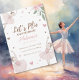 Celebre o dia especial da sua bailarina com este convite de aniversário elegante e caprichoso. Apresentando uma bailarina graciosa em um tutu cor-de-rosa cercado por delicados sotaques florais, este design estabelece o palco para uma celebração mágica. Personalize com o nome, a idade, a data da festa, a hora, a localização e os detalhes de RSVP.