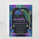 Convite Aniversário do Pavão Floral Azul-Elegante