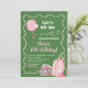 Convite de aniversário de Pickleball Retroativo Verde-Rosa