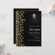 Um moderno, elegante e convite. Um fundo preto decorado com confete de ouro falso. Personalize e adicione fotos, um nome e detalhes da festa. Texto branco.
