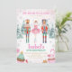 Entra num mundo mágico de doces e faíscas com o nosso Invício de inverno de Aniversário de Fada Rosa. Perfeito para um aniversário de inverno com um toque de balé e fantasia, esse design encantador apresenta uma fada de ameixa de açúcar rosa graciosa, um nutcracker clássico, cupcakes brancos, lábios, delicados flocos de neve prateada e pinheiros sonhadores. Este convite dá o tom perfeito para um dia de cheio de gêmeos, guloseimas e diversão de conto de fadas. BRT180