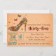 Convite do aniversário do estilo moderno o 35o caracteriza um salto alto projetado inteiramente fora das borboletas, as diversas outras borboletas, o papel de linho do olhar na parte dianteira e a parte traseira, e as áreas que você pode facilmente personalizar com os receptores nome do aniversário, a idade, e os específicos da festa de aniversário para a 35a festa de aniversário especial!