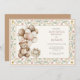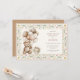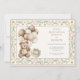 Celebre o aniversário do seu bebê com um adorável convite para ursos de peluche de aquarela, com balões, com creme neutro em sexo e aquarelas marrons, e um sábado decorativo e borda de ouro. Estilo branco ilustrado. Disponível no impressão, como download digital ou ambos!