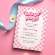 Um convite de aniversário de gingham rosa para meninas ou jovens que amam rosa. Este design apresenta o título "Vamos go party" em uma fonte brilhante e em negrito. Uma certa boneca loira e seu filme inspiraram esta design ;)