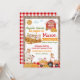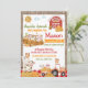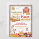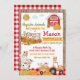Aniversário do Pumpkin Patch Farmer Boy. Animais da Fazenda na Fazenda de Abóbora com gingham vermelho e burlap.