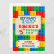 Este divertido e colorido convite de aniversário apresenta um brilhante design de bloco de construção (tijolo) em vermelho, amarelo, azul e verde, perfeito para crianças que adoram brinquedos de construção. Excelente para a festa de aniversário de um rapaz ou de uma rapariga, mas facilmente personalizável para qualquer idade. Personalize com o nome do seu filho, a data da festa, a hora e os detalhes de RSVP para criar um convite exclusivo que dá o tom para um dia de diversão e aventura!