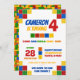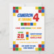 Blocos Coloridos De Construção De Tijolos Era Uma Festa de aniversário. Você pode alterar cores e estilos de fontes. Ele vem em um formato de texto editável que pode ser personalizado por você, o que o torna adequado para qualquer evento, como aniversários, festas gerais, chás etc. Um lado traseiro que corresponde ao modelo está incluído para que você possa adicionar informações adicionais sobre seu evento ou até mesmo uma imagem!
