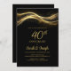 Levantem um copo conosco enquanto brindamos ao nosso 40º aniversário de casamento. Este elegante convite preto e dourado, é a forma perfeita de convidar os seus amigos e familiares a juntarem-se à alegria, riso e memórias queridas. Você pode adicionar facilmente todos os detalhes necessários ao texto personalizável. Escolha entre vários tipos de papel e estilos de canto para tornar seus convites exclusivos. Além disso, você tem a opção de baixar o convite se preferir um formato digital.