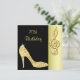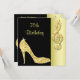Mulheres personalizadas, cartões de aniversário feitos sob encomenda elegantes do 70 com glitz e encanto. O ouro bonito da mulher e o convite tomado partido dobro preto do aniversário com os cristais de rocha glamoroso impressionantes de uma imagem impressa, o brilho, os sequins, os diamantes que bling calçados da forma dos estiletes dos saltos altos da faísca das jóias, e triplo glittery do ouro fenderam-se em um preto e em um fundo do ouro. O reverso deste aniversário feminino bonito convida tem o mesmo design com bastante espaço para que você personalize com seus detalhes do evento. Chique, cartões elegantes, bonitos, femininos, modernos para festas de aniversário, em cores na moda, elegantes/cores. Estes groovy, extravagante, à moda, sofisticado, bonito, cartões do girlie são decorados/imprimidos em ambos os lados. NOTE POR FAVOR: Todos os produtos em Zazzle têm imagens impressas do plano.