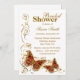 Um convite plano 5x7 com belas borboletas em vermelho e preto com asas douradas cercadas por espirais florais ouros. PERSONALIZAR TI - Altere o texto para se adequar ao seu dia especial. IDEAL FOR - festas de aniversario de meninas, um doce dezesseis, quinceanera, festa de solteira ou qualquer evento, função ou reunião tropical, ilha de destino.