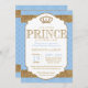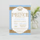 Dourado brilho, azul de bebê real. Bem-vindo a um pequeno príncipe ou comemore o seu aniversário com este convite real ao querido.