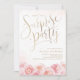 Escrito moderno de "festa surpresa" em chic, brilhante de ouro de moda e design floral cor-de-água rosa e cor-de-rosa, elegante e na moda, convite de aniversário para adultos surpresa de excelente para qualquer idade.
