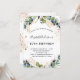 Para um aniversário de 40 anos ou qualquer idade. Um fundo branco decorado com verde de eucalipto e folhas de ouro. Personalize e adicione seus nomes e detalhes do casamento. Letras pretas e ouros coloridas.