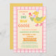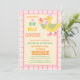 o design mostra um convite de aniversário para um ano de idade escrito em várias cores junto com um ganso no canto superior direito. este design é extremamente bonito e será ideal para o seu aniversário de um ano.
