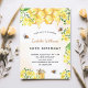 Um convite de aniversário 50º (ou qualquer idade) com fundo branco e ouro de cor d'água. Decorados com espécimes do gênero Bombus, melando mel e favos de mel com flores amarelas, flores e um pote de mel. Personalize e adicione um nome e detalhes da parte. Ouro e letras pretas. Perfeito para o verão ou o outono.