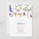 Celebre sua flor silvestre! Este divertido convite de aniversário com formato de flor apresenta uma cascata de aquarela de ilustrações florais. Personalize com suas informações ou clique em "Clique para personalizar mais" para editar estilos de fonte, tamanho e cores.