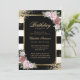 Convite de aniversário floral, branco e preto elegante, listrado, inspirado por rosas rosa pinceladas. Enche o convite de aniversário floral. Convites de aniversário em preto e branco. Convites de aniversário em preto e ouro. Personalize facilmente qualquer aniversário.
