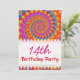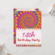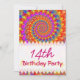 Convites de aniversário com um padrão fractal de estilo hippy psicodélico em turquesa rosa e amarelo.