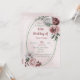 Belo convite de aniversário botânico com flores românticas rosa, brancas e canela rosa/ chianti com folhas verdes em um quadro geométrico romântico. PARA MAIS PRODUTO CORRESPONDENTE, clique na coleção acima ou entre em contato comigo.